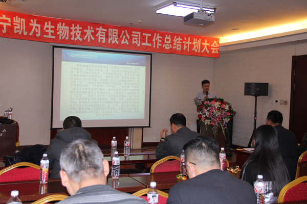 2017年1月6日下午,寒冷冬日,暖陽高照,美麗的渤海之濱錦州,遼寧凱為生物技術(shù)有限公司2016年工作總結(jié)和2017年工作計(jì)劃大會(huì)在華信大廈會(huì)議廳隆重舉行,遼寧凱為自2005年創(chuàng)建以來,歷時(shí)11年的發(fā)展歷程,我們積累了經(jīng)驗(yàn),也展示了多年的成果,展望2017年未來的發(fā)展重點(diǎn)和方向,現(xiàn)在,凱為人踏著夢(mèng)想而來,滿載而歸。未來,凱為人堅(jiān)定地為公司添磚加瓦、壘筑高臺(tái),讓夢(mèng)想更加豐滿,讓基業(yè)更加長青。整個(gè)會(huì)議歷時(shí)三個(gè)小時(shí),包括總經(jīng)理王鐵良先生作年度工作總結(jié)、計(jì)劃報(bào)告,銷售部總經(jīng)理趙福寬先生作銷售部年度工作總結(jié)、計(jì)劃報(bào)告,優(yōu)秀員工表彰等環(huán)節(jié)。會(huì)議進(jìn)行中,掌聲數(shù)次響起,整個(gè)會(huì)場(chǎng)始終洋溢著振奮、進(jìn)取、熱烈的氣氛,精彩紛呈,亮點(diǎn)鮮明。